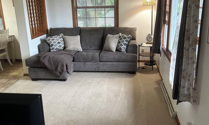 Your cozy getaway awaits in Marshfield at this adorable apartment. With 1 bedroom and 2 bathrooms, this superb property offers everything you need for an enjoyable stay. The bedroom features a comfortable queen bed, and there's even an additional office space that features an additional queen bed. Stay connected with WiFi, and take advantage of the convenience of a washer & dryer & one car garage space. Whether you're visiting for business or pleasure, this apartment is the perfect home away from home. We're happy to assist with any questions while you stay at our apartment.