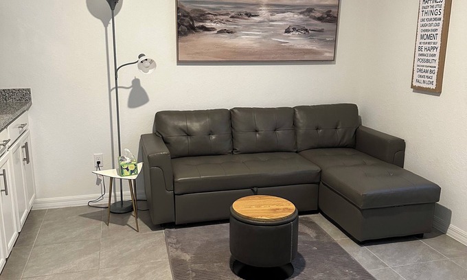 This 1-bedroom apartment is perfect for your escape to Port St. Lucie. Nestled in a peaceful and pleasant setting, our lovely property offers everything you need for a memorable stay. The cozy bedroom provides a comfortable retreat after a day of exploring the city. You'll find all the necessary amenities, including iron, heating, AC, hair dryer, washing machine, and WiFi. Plus, there's an additional living room space with a sofa bed for extra convenience. Whether you're here for a weekend getaway or an extended vacation, you're sure to make fantastic memories with a stay at our place.