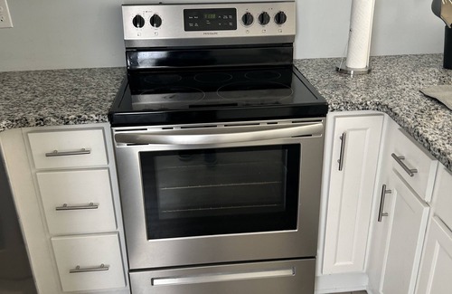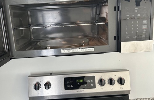 The kitchen is equipped with a refrigerator, stove, microwave, dishwasher, and basic essentials like spices, seasonings, dishes, silverware, cups, and plates — making it easy to whip up simple meals or enjoy takeout at home. Please note: while there's no coffee maker, nearby cafes and coffee spots are just minutes away.