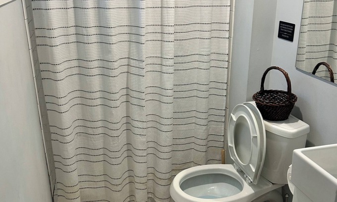 Step inside and experience an open, thoughtfully designed layout that combines simplicity with comfort. The living area includes a smart TV, high-speed WiFi, and comfy seating — perfect for lounging or streaming your favorite shows. The queen-size bed offers soft linens and a restful night’s sleep, while the spacious bathroom features a tub/shower combo, fresh towels, and essentials for your stay.