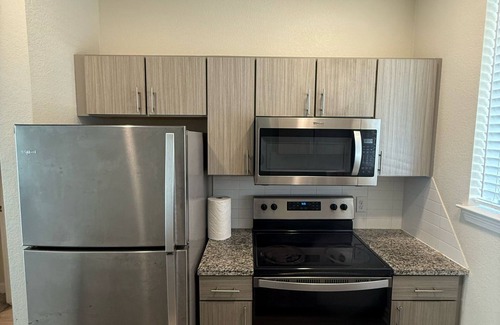 Welcome to this charming apartment in Cedar Park. This cozy space features 1 queen bed, a bathroom with a jetted bathtub, and convenient amenities like WiFi and a washing machine. Guests can enjoy a pleasant stay in this excellent property, perfect for a relaxing getaway. Feel free to reach out to us during your stay - we're happy to suggest local spots to check out.
