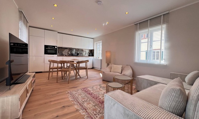 The apartment is located in the charming old town of Flörsheim, just steps from shops, cafés, and restaurants.