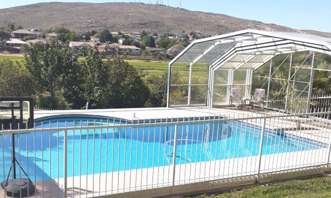 For your safety, our pool and spa are fenced, with no lifeguard on duty. A locked gate accessible with a key provided at check-in with adult supervision. When guests are not using the pool area, the gate must remain locked, and the key secured. We ABSOLUTELY require adult supervision 100% of the time when guests have access inside the pool fence. We have a few life jackets available for your non-swimmers. You will have access to the pool until 10:00 pm, with extended super-quiet whisper voices use of the spa for wonderful star gazing summer and winter. At all times, we ask for quiet (as quiet as children and teens can be in our residential neighborhood and no loud parties any time. Sorry, no smoking anytime on our property, and no alcoholic containers, or beverages in the pool, or yard areas. Yes, we love you and want you to be happy and SAFE.