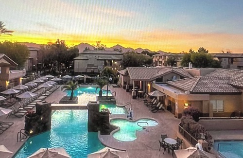 Your Scottsdale adventure begins at this lovely 1-bedroom condo. The cozy bedroom features a comfortable king bed, perfect for a good night's sleep after exploring the city or exploring the desert and mountains. Enjoy the jetted bathtub in the bathroom for a relaxing soak. The living room offers an adorable sofa bed for extra guests. With tv and comfy chairs, dining area and full kitchen. Make your holiday one for the books with a stay at our place.