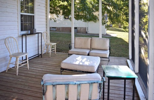Your Arrow Rock adventure begins at this 1-bedroom house. Nestled in the heart of the village, this freshly restored property offers a wonderful escape for guests. The cozy bedroom features a comfortable queen bed, and is attached to a screened porch with a great Arrow Rock view. With amenities like AC, WiFi, a hair dryer, heating, and a washing machine, you'll have everything you need for a delightful stay. The bathroom is equipped with a hair dryer and a refreshing shower. Whether you're exploring the historic sites, attending the famous Arrow Rock Lyceum Theater or simply relaxing in the charming surroundings, this house is the perfect home base. Feel free to reach out to us during your stay; we are Arrow Rock residents of nearly 20 years and are happy to suggest local spots to check out.