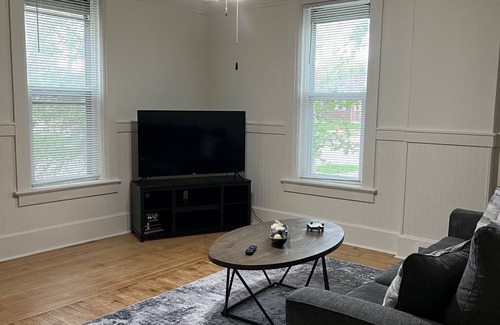 Book before its gone! This beautifully updated apartment will feel like home with all it"s modern upgrades. This apartment is great for both short and long term stays. Close to 2 local hospitals CGH and KSB for traveling health care. Just minutes from downtown Sterling where there are many wonderful small town pubs, eateries and coffee shops. And it is only a few blocks from the Rock River and bike or walking path. This cute and cozy updated, main floor apartment has all you need! The bedroom has a queen bed with luxury sheets, black out curtains, 32" smart TV, closet and dresser. The living room is complete with a comfy couch and 50" smart TV. There is a nice table for dining or could be used as an office desk. Complementary high speed wifi. The kitchen has all you need! Microwave, stove, refrigerator, coffee maker, dishes, all utensils, pots and pans