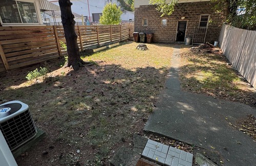 This one-bedroom love nest is on the first floor of a duplex, with the owner/host living above. There are a few steps required to enter the house from the front (3) or back door. The apartment has direct access to the fenced-in backyard via the back door. Off-street (1 space) and on-street parking available. Check-in by electronic keypad.