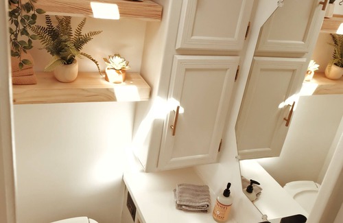 Discover this adorable 1-bedroom gem in Leeds. The RV features a cozy queen bed, WiFi, AC, and heating. The bathroom comes with a hair dryer and a refreshing shower. Our place is equipped for a great night sleep after a day of exploring and hiking.