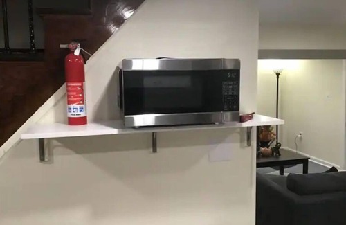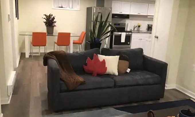 This modern English basement will have you feeling at home. After a long a long day of sight seeing, or work, you will relax in the jet tub or watch Amazon prime.
