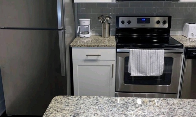 Kick back and relax in the stylish 1 bedroom. Great location with close proximity to grocery stores, restaurants, bars, and shopping. Minutes from Atlanta! Beautiful courtyard view for a more relaxed vibe. Fully furnished and kitchen comes with everything needed to cook delicious meals!