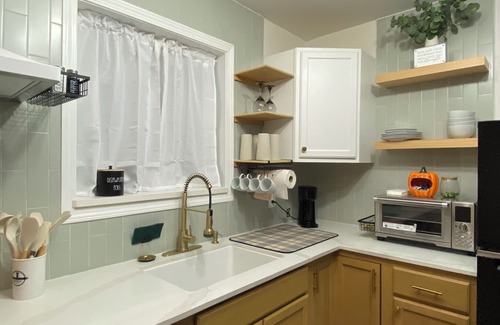 Get ready to relax in this tranquil 1 BR/1 BA Tiny Cozy Home located separately behind the main home, fully fenced and gated for privacy, providing you with everything you need and more.