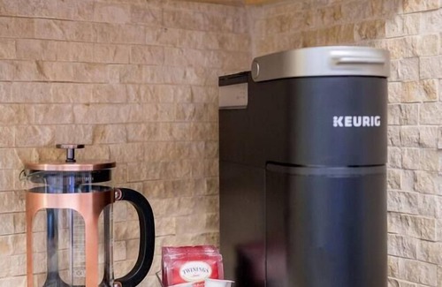 Kickstart your day by brewing coffee using the coffee maker, and use the toaster and blender to whip up a quick breakfast. When you're in the mood for takeout, enjoy it at the high-top dining table, and utilize the microwave to warm up leftovers for a late-night treat. Need extra workspace? A dedicated desk area in the lounge beckons you to arrange your devices and charge them as needed.