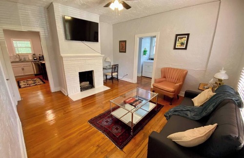 Built in 1925, this beautifully restored 1-bedroom apartment is nestled in the historic Belhaven neighborhood, just minutes from downtown Jackson and the vibrant Fondren arts district. This cozy retreat offers a perfect blend of vintage charm and modern amenities, making it an ideal stay for solo travelers, couples, or business guests.