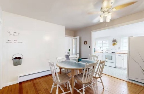 Tucked away in the heart of North Beach, this original 1940s colonial-style home is a delightful blend of modern comfort and rustic-farmhouse warmth. Sunlight seems to find every corner, from the comfortable living room (with ample seating and a TV) into the dining room and country kitchen. Step outside and take summer meals on the spacious, wraparound deck, and linger afterwards in Adirondack chairs around the firepit in the yard.