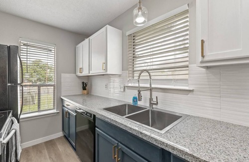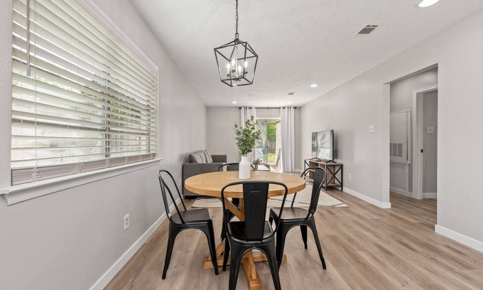 Whether you're here for work, pleasure, or visiting loved ones; this space is a perfect gathering spot for all. Our open concept living room, stainless steel appliances, and state of the art beds and linens will make you feel right at home. Not only is the space cozy and inviting, but we are also centrally located. We are close enough to be a 5 min drive to the heart of campus, but also right outside of the busy noise of College Station! :)