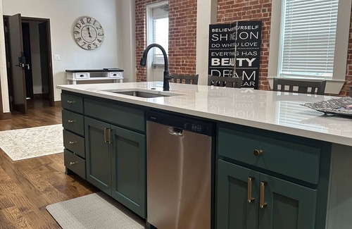 The stylish and comfortable interior creates a cozy atmosphere to spend time with friends, or rest after a busy day. Enjoy a peaceful stay at this charming 2-bedroom apartment. With amenities like a washing machine, WiFi, and a hair dryer, guests can relax and unwind during their stay. The bathroom includes a bathtub for a soothing soak after a day of exploring. Our place will help you feel at home while you're traveling in Aubrey!