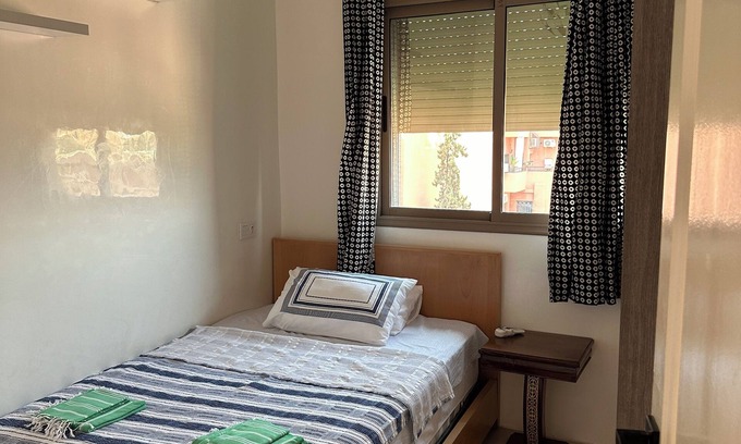 Nestled in Marrakech, this delightful this quiet 2 bedroom apartment is the perfect retreat for guests seeking an amazing vacation experience.it is situated in the modern part of Marrakech, in Gueliz, close to the French school , Victor Hugo. The building is well-maintained with an elevator. The apartment, located on the 4th floor, comfortably sleeps 3 guests. It features a fully equipped kitchen with purified drinking water, a full-size fridge freezer, oven, stove, washing machine, and dishwasher. There are plenty of restaurants and small shops nearby. With 2 cozy bedrooms, including 1 full bed and 1 queen bed, you'll have a tremendous night's sleep after exploring the vibrant city. we hope you'll enjoy your stay at our apartment.
