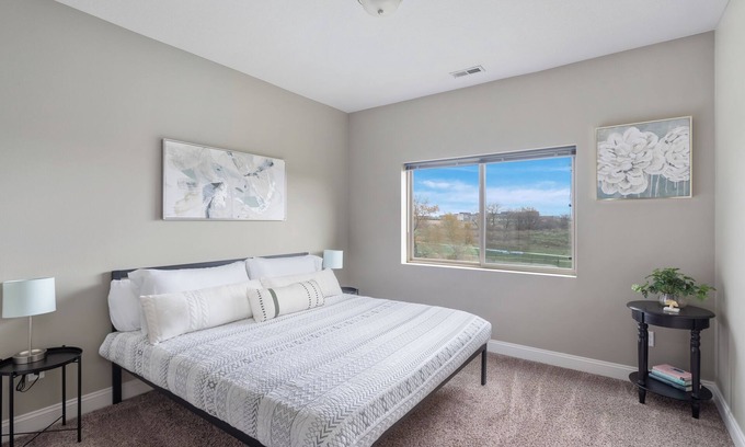Welcome to this marvelous 2-bedroom apartment in West Des Moines. Each bedroom features a comfortable king bed, perfect for a good night's sleep. Enjoy the convenience of having a hair dryer, AC, iron, and WiFi at your disposal. With 2 bathrooms offering both a shower and bathtub, getting ready in the morning is a breeze. Make yourself at home in this enchanting retreat, complete with a fitness room and a washing machine for your convenience. Your stay here will surely be enjoyable. Feel free to reach out to us during your stay - we're happy to suggest local spots to check out.