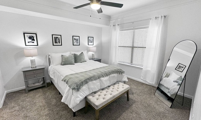 Your home away from home in Buford with 2 bedrooms. This adorable apartment is the perfect retreat for guests seeking a cozy vacation experience. With 2 queen beds, you'll have a comfortable and relaxing stay. Enjoy the fantastic amenities including a community pool, fitness room, AT&T Fiber WiFi, AC in unit, washing machine & dryer, and an iron. Hair dryer. The 2 bathrooms, feature a bathtub & shower, provide convenience and comfort. Whether you're exploring the city or simply unwinding in the cozy living space, you're sure to make fantastic memories with a stay at our place. 2 Bedrooms with 2 full size bathrooms is on the 2nd floor. You will have 1 flight of stairs to reach the unit. There is no elevator.