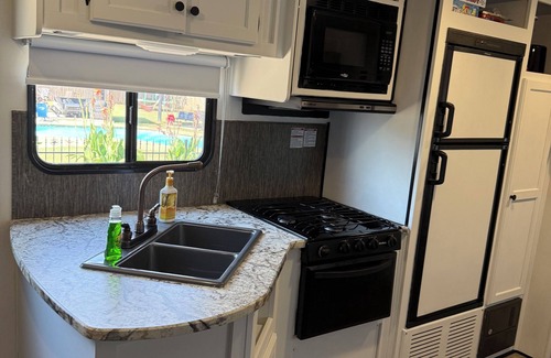 This memorable caravan is the perfect home base for your trip to Cleburne. With 2 cozy bedrooms featuring a queen bed and a bunk bed, as well as a nice living room with a comfy futon, this place is perfect for small groups or families. Enjoy the pleasant bathroom amenities like a hair dryer and bathtub, along with modern conveniences like AC, WiFi, and heating. We look forward to hosting you at our place. We use to allow animals but after a dog destroyed our RV and I had to totally remodel the RV we will no longer allow any animals. It breaks my heard because we have animals and love animals.