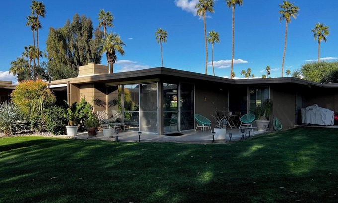 - Pool Hot Tub Yard Games Chic Midcentury Design Painted Sand by AvantStay