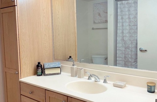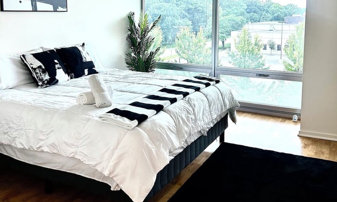 This delightful condo in Skokie offers a cozy retreat for guests. With 2 bedrooms featuring a queen and king bed, along with 2 bathrooms equipped with a bathtub and shower, this charming space has everything you need for a comfortable stay. Enjoy amenities like a fitness room, AC, WiFi, and a washing machine during your visit. We'll be available to answer any questions while you stay at our place.