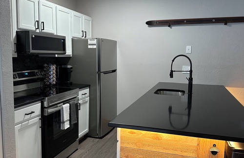 This charming condo features a fully equipped kitchen, a cozy back patio, highspeed Wi-Fi, and access to resort amenities. These amenities include basketball and tennis courts, the pool, and the wonderful slopes located a short walk away. The open plan living and dining areas provide a comfortable space to relax with family or friends and don't forget about the beautiful, spa-like black stone shower!