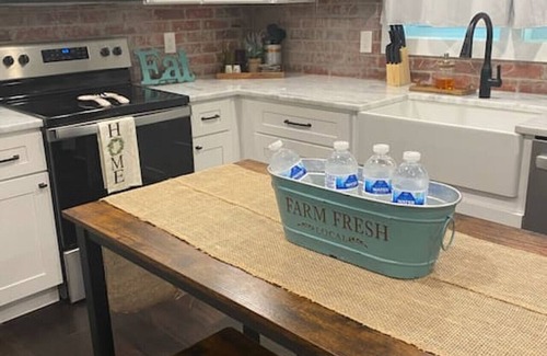 Book this cozy Smyrna cottage where the worlds of farmhouse living and modern chic collide. This remodeled 1950's ranch sits on a large corner lot with a parking pad for multiple cars. The interior features an open concept with new stainless steel electric appliances to keep guests engaged. Enjoy complimentary coffee, tea, and water. Nearby are the local bars, restaurants, and Cumberland Mall. The new braves stadium at the Battery Atlanta all less than 5 miles from your stay.