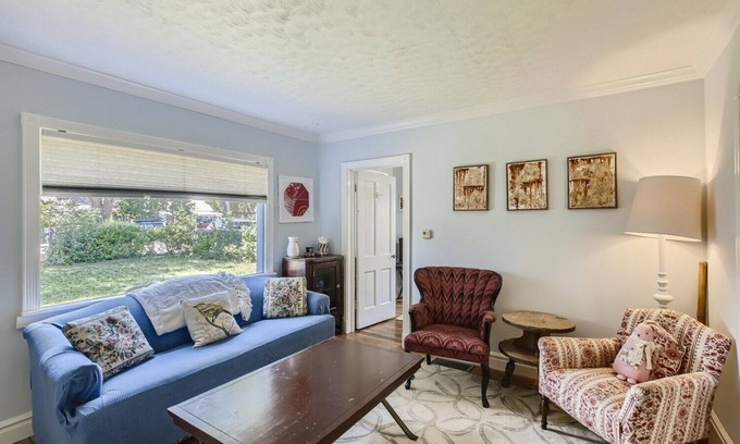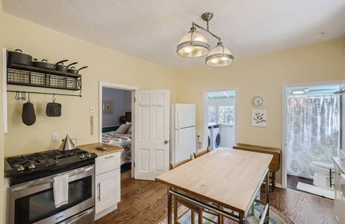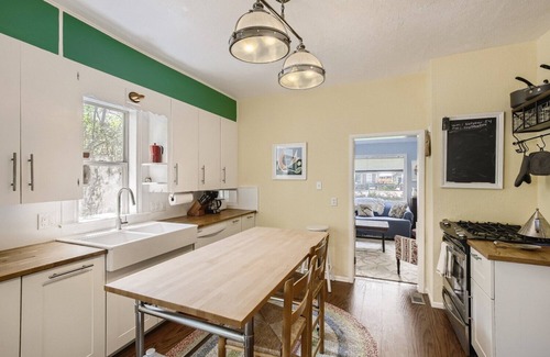 The backyard is fully fenced in for your pups to enjoy, but please don't leave any dogs outside unattended. The backyard has a chicken coop that connects to the neighbor’s yard with a chain link gate.