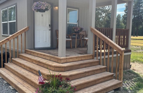 Located in Chiloquin, this cabin is a dream. Marvelous and pleasant, this delightful property offers a cozy retreat for guests. With a queen bed in each of the bedrooms, everyone will have a restful night's sleep. The cabin also features a bathroom with shower and hair dryer. In the living room there is a comfortable Queen sofa bed for extra sleeping arrangements. Stay connected with WiFi and enjoy the convenience of heating and AC. There are air conditioners in each bedroom, as well as one in the main living room. Charging tables in every room. Coffee bar, microwave, double oven, full size refrigerator, and much more. We'll be available to answer any questions while you stay at our place.