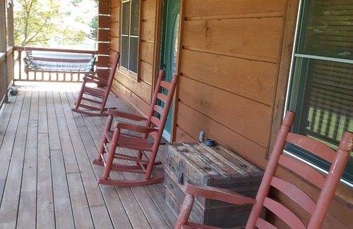 Tranquility...perfect for quick getaway to the mountains. Cabin has full kitchen in a vaulted greatroom. Enjoy nature rocking on covered porch..or get adventurous whitewater rafting, hiking, fishing and more. Centrally located most activities are within 30 to 40 minute drive...