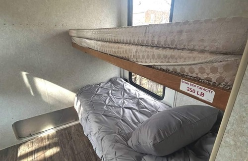 Experience Euclid like a local in this 2-bedroom recreational vehicle. Nestled in a serene setting, this awesome property features 1 queen bed and 1 bunk bed, perfect for a small group of guests. With WiFi and AC available, you can stay connected and comfortable during your stay. The bathroom includes a shower for your convenience. Escape the hustle and bustle of the city and unwind in this excellent vacation rental. We look forward to hosting you at our place.