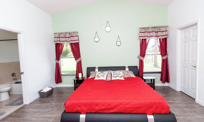 Located in Kissimmee, this superb studio boasts 2 cozy bedrooms with a king and queen bed. The bathroom features a relaxing bathtub and a hairdryer for your convenience. In the additional living space, you'll find a comfy sofa bed perfect for lounging. With amenities like AC, heating, WiFi, and an iron, guests will feel right at home. Fall in love with Kissimmee and enjoy the magic it has to offer. This is unit-B.