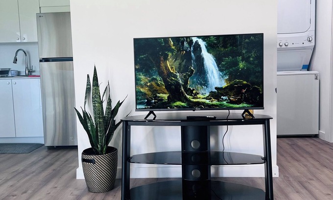Enjoy high-speed WiFi, a fully equipped kitchen, stylish comfort living room, 1 King and 1 queen bedroom. Perfect for both relaxation and city adventures.