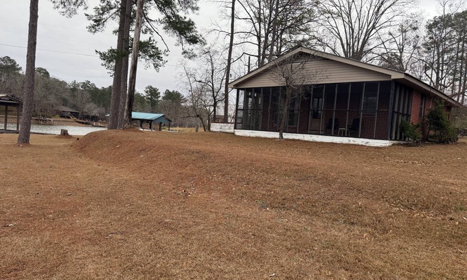 Located in Jacksons' Gap, this charming cabin has the epic water views you’re looking for with a huge lot located on a point to give you 180 stunning views of Lake Martin. The house includes 2 bedrooms, one with a queen bed and the second room includes a twin bed, and twin bunk bed, guests will find the space cozy and inviting. The cabin offers heating, AC, WiFi, outside grilling area. The closest boat launch is Dare Power Park with only a 6 minute drive.