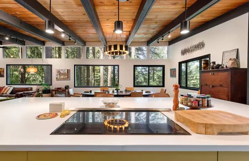 Located just minutes from the Russian River, Occidental, and Sebastopol, the home is perfectly positioned for exploring wineries, breweries, hiking trails, and charming towns. After a day out, return to your quiet forest base to recharge in nature’s calm.