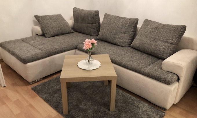 You can expect a cozy 2-room apartment. It is fully equipped with everything that is needed. The kitchen is equipped with a hotplate, microwave, refrigerator, coffee maker, kettle, washing machine and utensils for cooking. The bathroom has a bathtub. Bedroom is aligned with box spring bed and wardrobe. The living room offers a large sofa bed, chest of drawers and dining area. The apartment is provided with free WiFi. The balcony faces the courtyard.