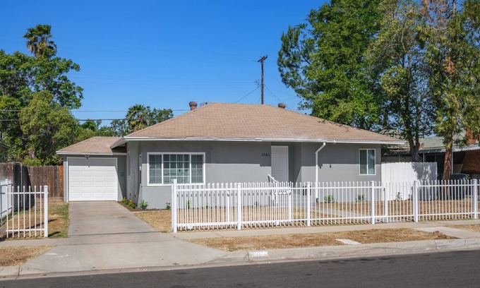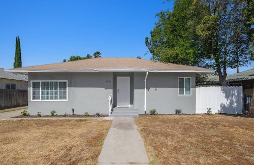 Upgraded 2 bed 1 bath, all new appliances and furniture, 2 min off R99, 10 min to airport, great access (70 min) to national parks (Yosemite, Sequoia, Kings Canyon, etc), close to stores and restaurants, fenced front and back yards, 300 MB high speed wifi, hardwood flooring, 65" TV w. Xfinity cable + Netflix, propane BBQ grill, all kitchen essentials including blender, coffee maker. 2 queen beds, 1 full-twin bunk bed and 1 queen sofa bed. 2 cars securely parked inside fence gate with lock