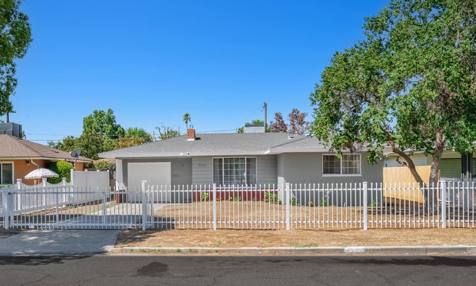 Upgraded 2 bed 1 bath, all new appliances and furniture, 5 min to airport, great access (70 min) to national parks (Yosemite, Sequoia, Kings Canyon, etc), fenced front and back yards, 300 MB high speed wifi, hardwood flooring, 65" TV w. DIRECTV + Netflix, propane BBQ grill, all kitchen essentials including blender, coffee maker. 1 queen bed, 1 full-twin bunk bed and 1 queen sofa bed. 2 cars securely parked inside fence gate with lock