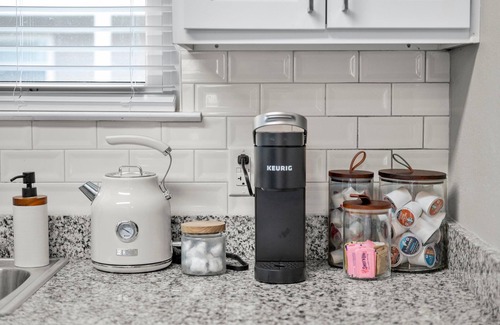 • Fully equipped with an air fryer, toaster, Keurig coffee maker, and all essential cookware.