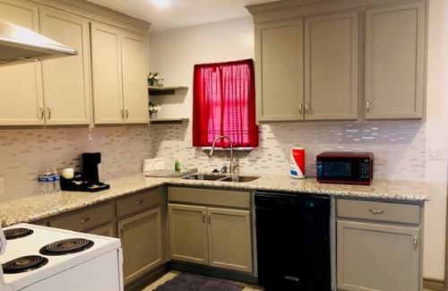 As a traveler, you'll love a day of sightseeing, staying connected with the free WiFi, and taking advantage of the in-unit washer and dryer. Curl up on the living room sofa and enjoy your favorite shows on the smart TV with antenna channels, free HULU and Peacock. The fully stocked kitchen is equipped with a stove, oven, refrigerator, microwave, dishwasher, and all the cookware and utensils you need to prepare delicious meals.