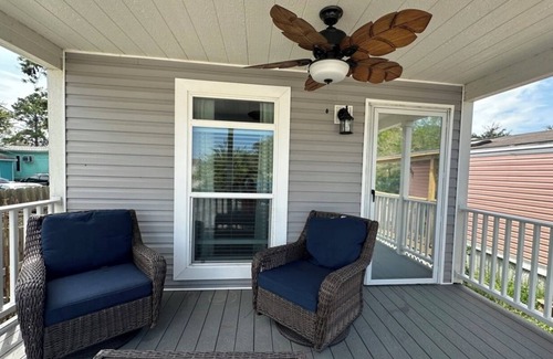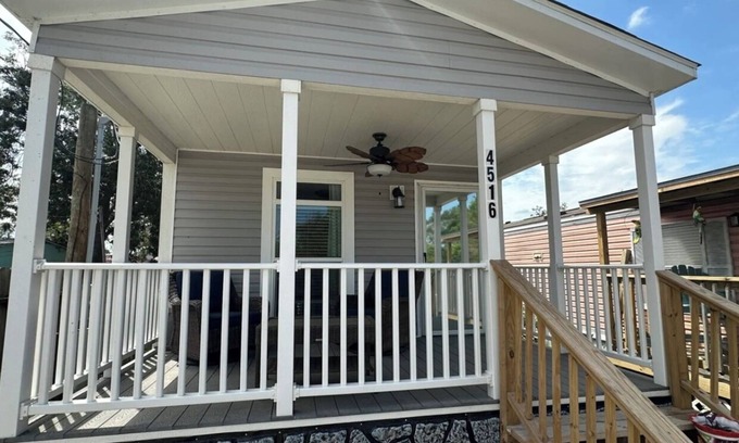 Located in Bacliff, TX. This adorable manufactured home is a dream. With 2 bedroom, 2 full bathroom featuring a king size bed in the master and a queen size bed in the guest bedroom, perfect for a wonderful night's sleep. The master bathroom has a shower, jacuzzi so guests can freshen up after a day of exploring. The living room offers an additional space with a cozy sofa bed for relaxation.