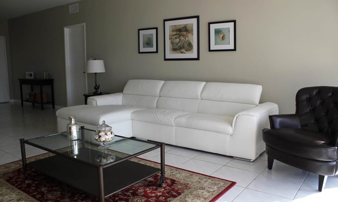 Este bello apartamento comfortablemente acomoda 4-6 personas. El cuarto principal es espacioso con una cama king, un closet amplio y su proprio baño y TV. El cuarto de invitados tiene dos camas full y una TV. La sala tiene una TV moderna con accesso al internet y accesso a Netflix complementario. La cocina esta completamente equipada y tiene una lavadora de platos para su conveniencia.