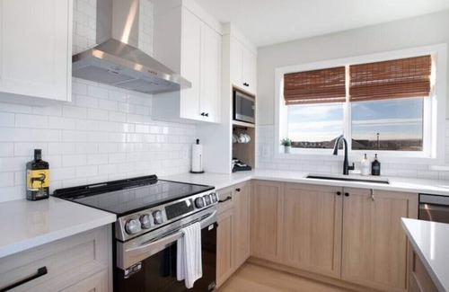Cozy 2BR Carriage House with Waterfront Views is located in Airdrie. Cozy 2BR Carriage House with Waterfront Views provides accommodation, featuring Kitchen, TV, Fireplace/Heating, among other amenities. This Apartment features Kitchen, TV, Fireplace/Heating, to make your stay a comfortable one.