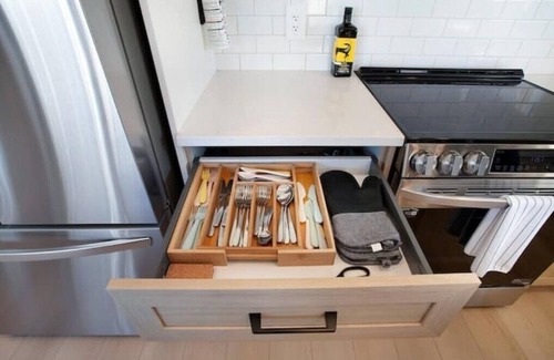 Kitchen & Dining: A full kitchen, boasting state-of-the-art appliances, enables you to prepare gourmet meals with ease. Enjoy your culinary creations at the stylish dining island, perfect for both quick breakfasts and intimate dinners.