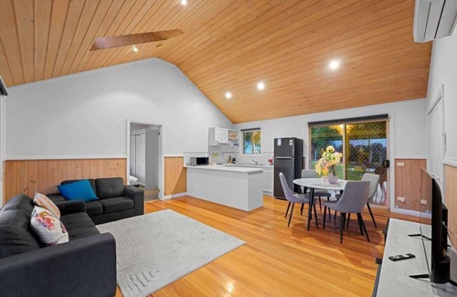 Nestled in the heart of the Mornington Peninsula, our charming single-level cottage offers a serene retreat amidst nature's embrace. Surrounded by lush greenery and the gentle sounds of native wildlife, the property provides a peaceful escape from the hustle and bustle. The spacious backyard, often adorned with soft grass, invites guests to relax outdoors, perfect for morning coffees or evening stargazing.