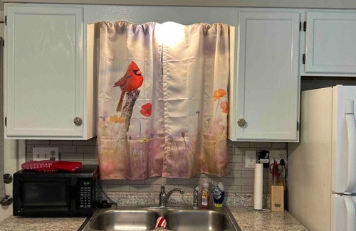 • Experience comfort and convenience in this charming 2-bedroom home, perfect for up to 4 guests. Nestled in a quiet neighborhood, each room is equipped with privacy blinds for your peace and tranquility.