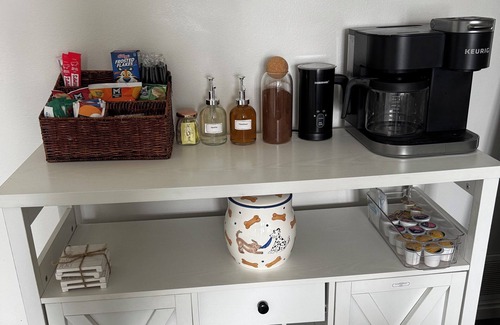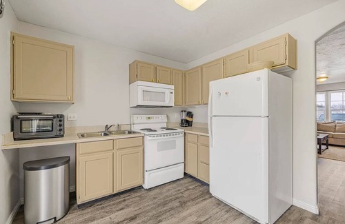 • Fully equipped kitchen with full-size appliances and coffee maker