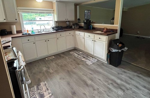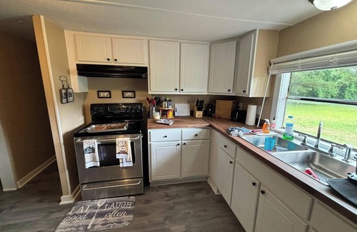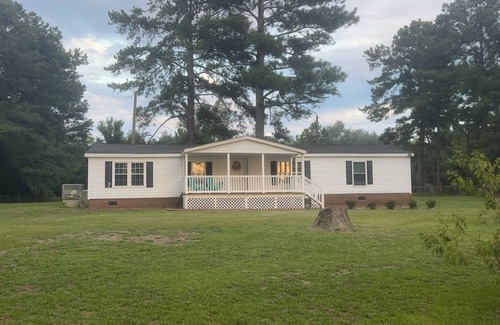 Consider this mobile home your home away from home while you visit Greenville. This perfect retreat offers 3 bedrooms - 2 queen beds and 1 futon, along with a cozy living room featuring 2 full beds. With amenities like AC, WiFi, and a washing machine, guests can relax in this soothing and tranquil space. Two bathrooms ensure convenience for all. A great place to call homebase while you're away, we hope you enjoy your stay.