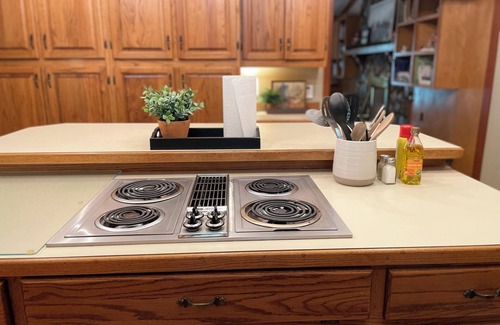 In the evening, relax in our large hot tub on the back porch or enjoy roasting marshmallows around the smokeless fire pit in the fenced backyard.